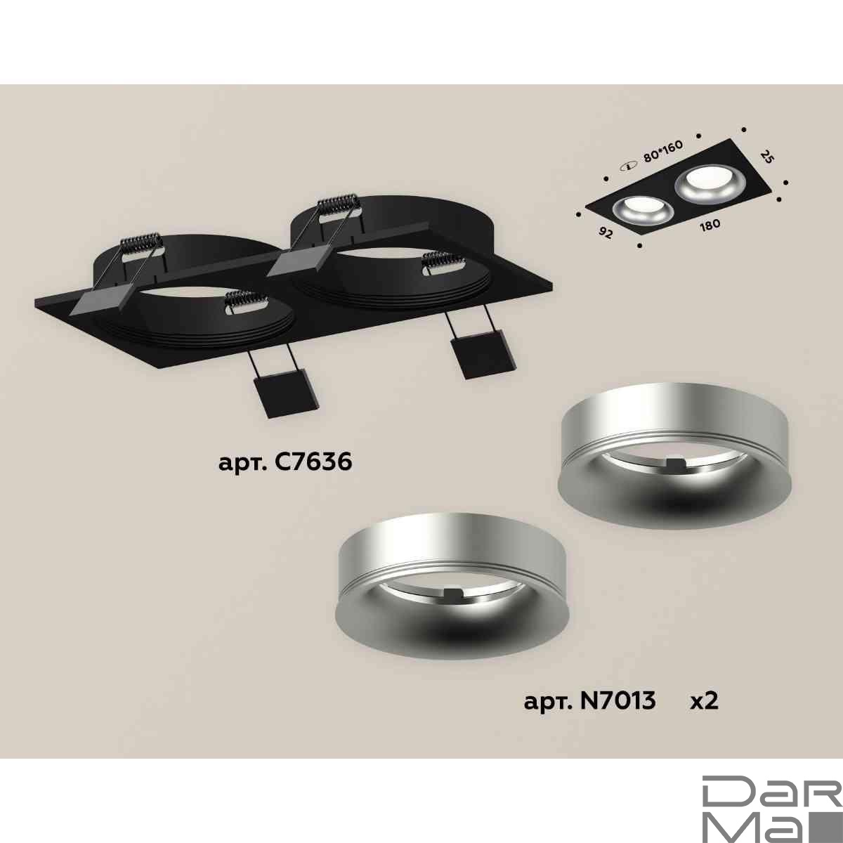 Комплект встраиваемого светильника Ambrella light Techno Spot XC7636004 SBK/MCH черный песок/хром матовый (C7636, N7013)