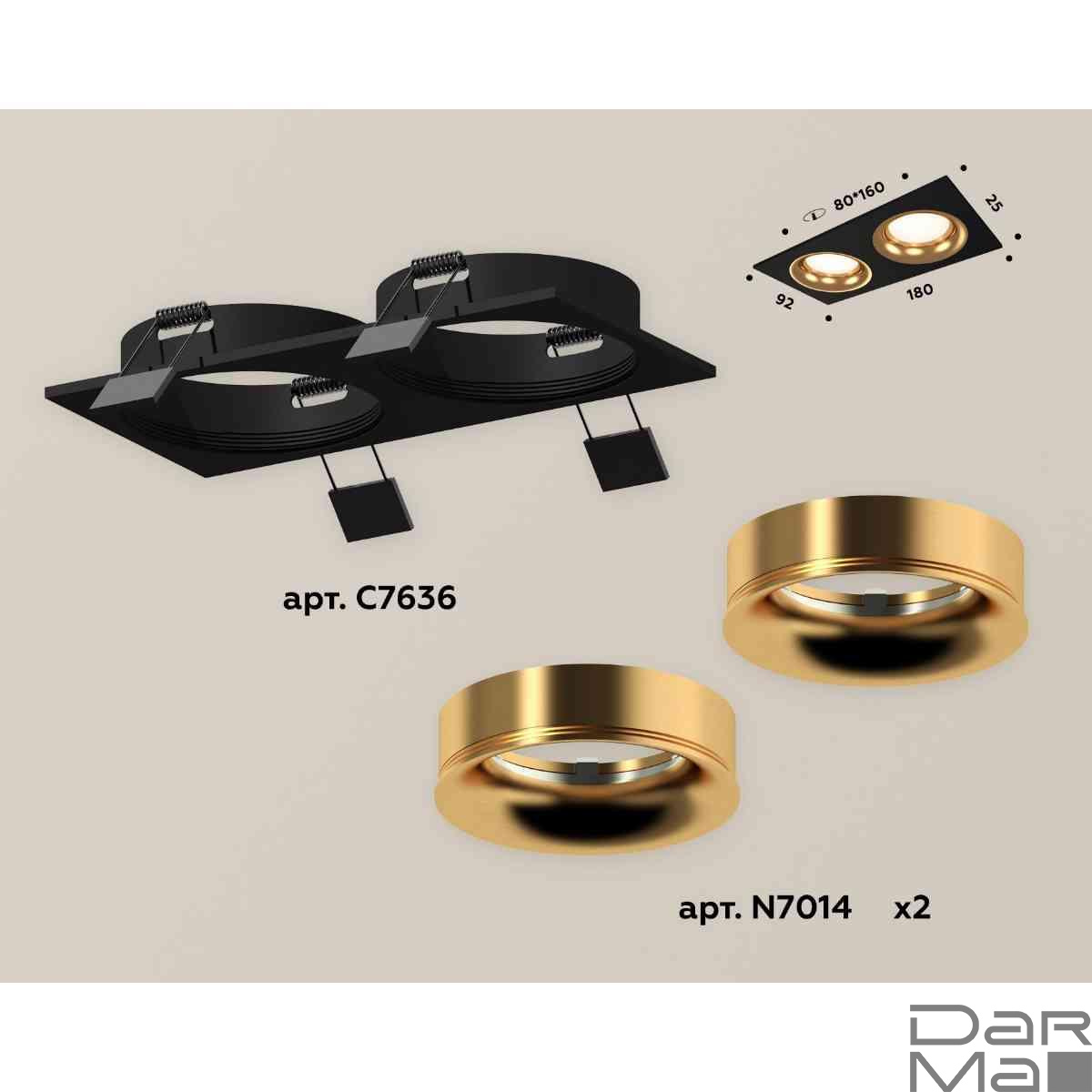 Комплект встраиваемого светильника Ambrella light Techno Spot XC7636005 SBK/PYG черный песок/золото желтое полированное (C7636, N7014)